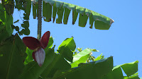 | blossom on banano tree prior to fruit budding |